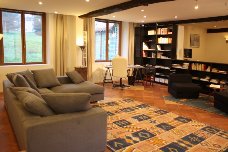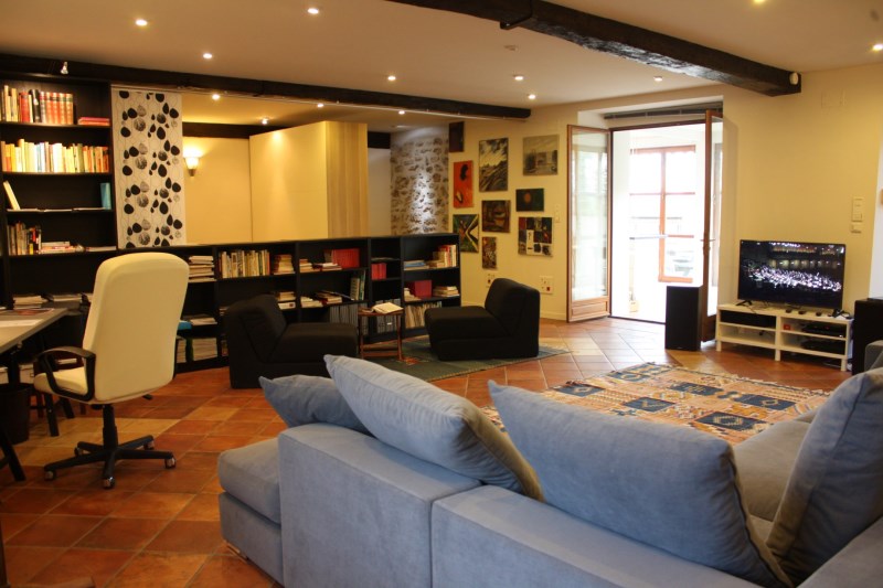 Le salon avec son coin bureau et sa bibliothèque est aménagé dans une confortable surface de 50 m².